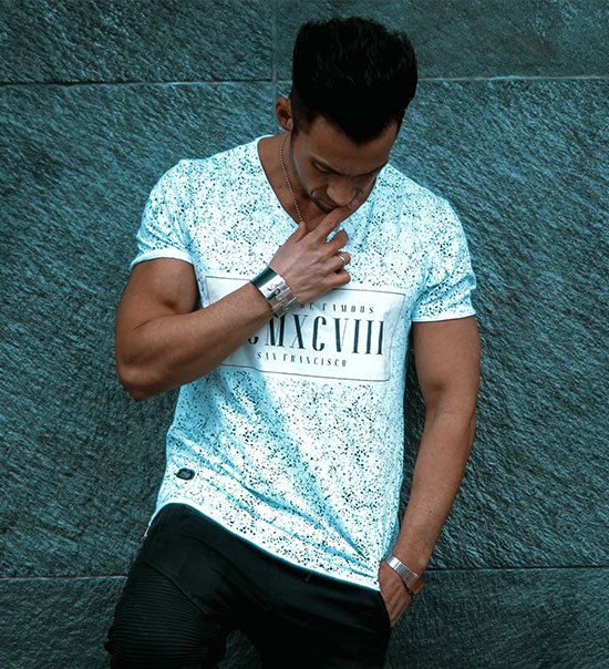 A woman in a shirt sits poised and expressive, proving that the most powerful statements are often the simplest ones.