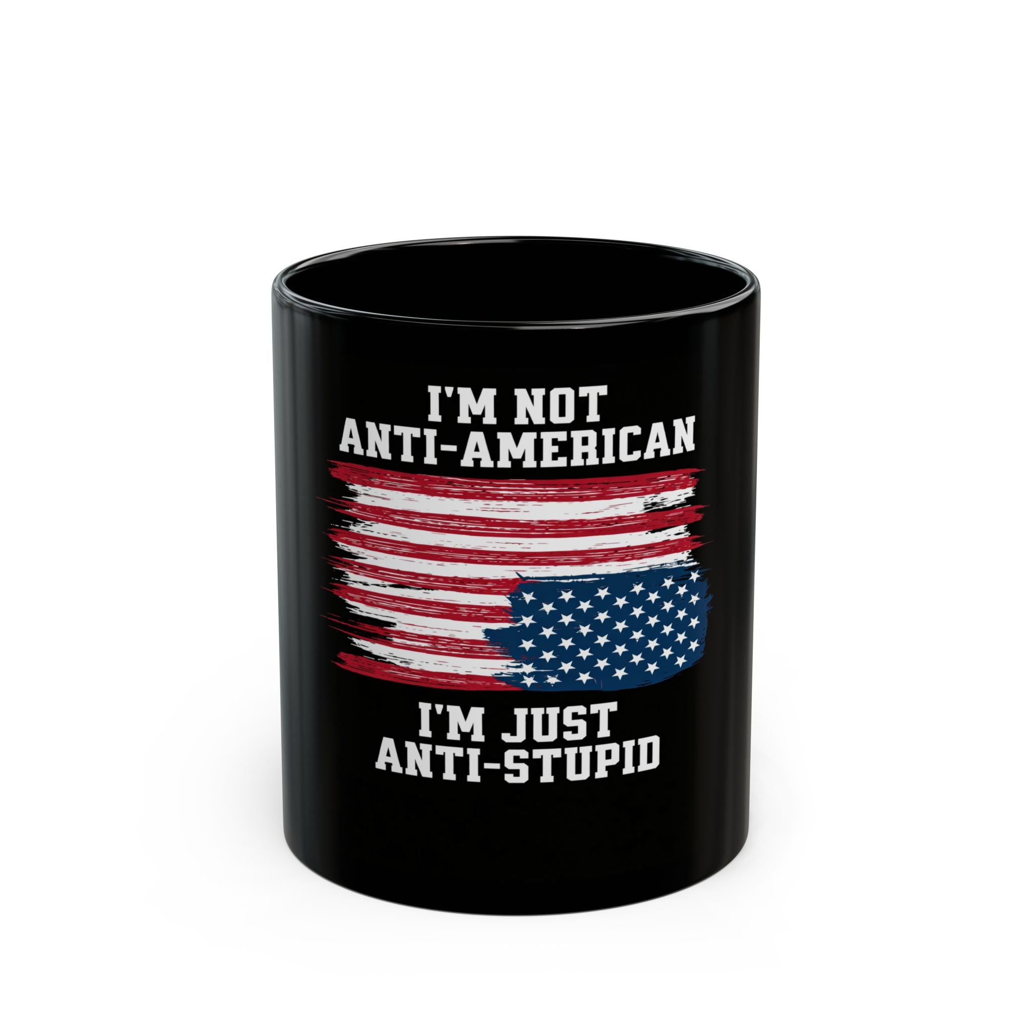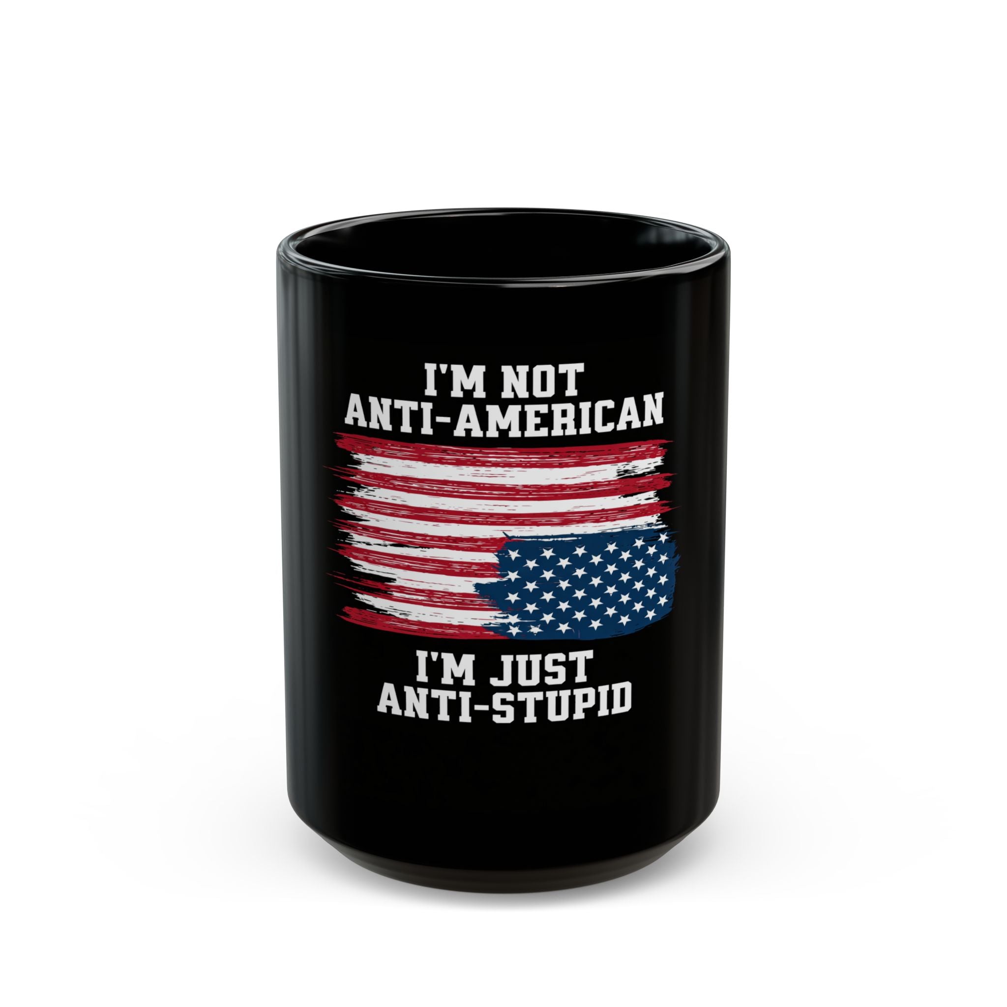 Political Satire Coffee Mug – Anti-Stupid Flag Black Ceramic (11oz & 15oz)