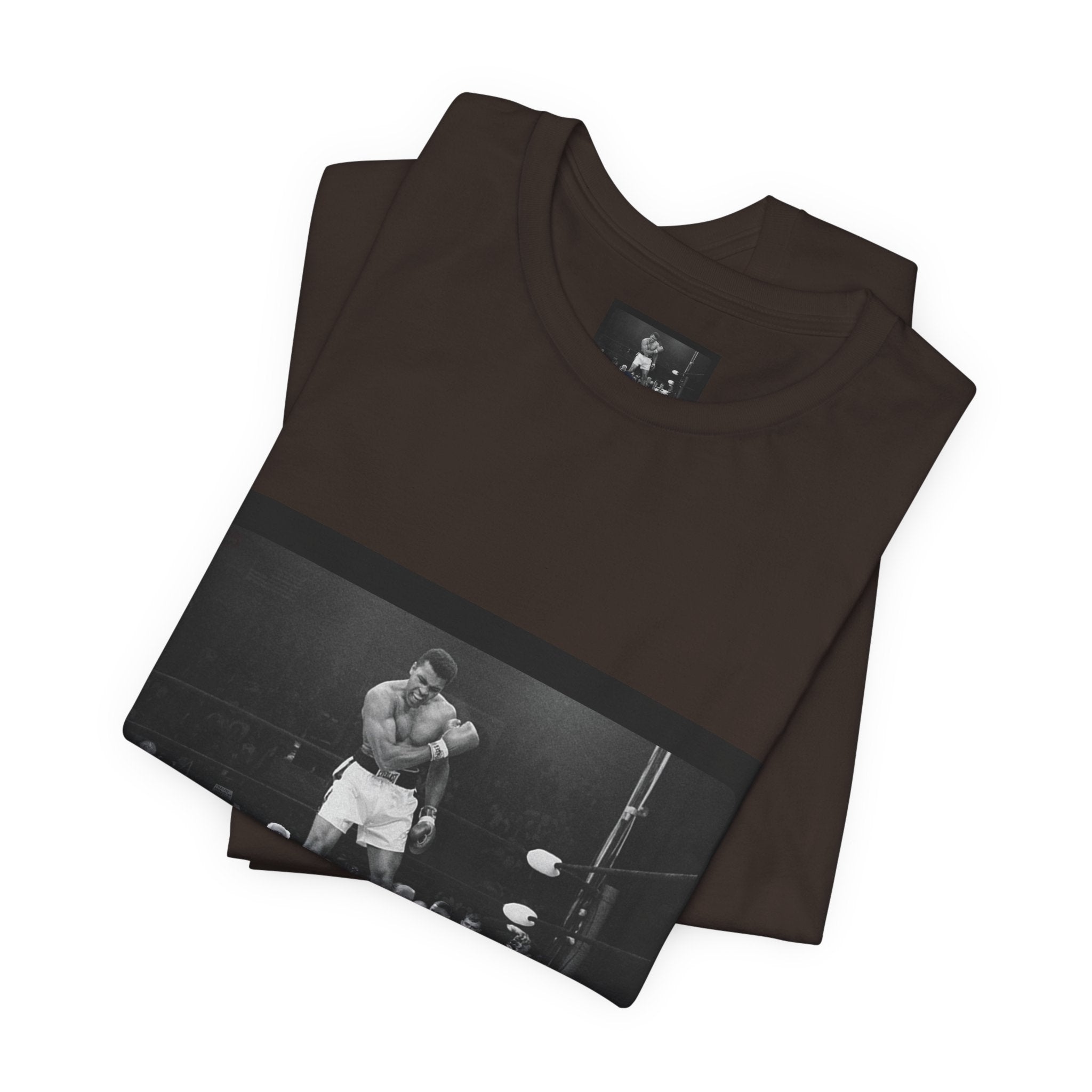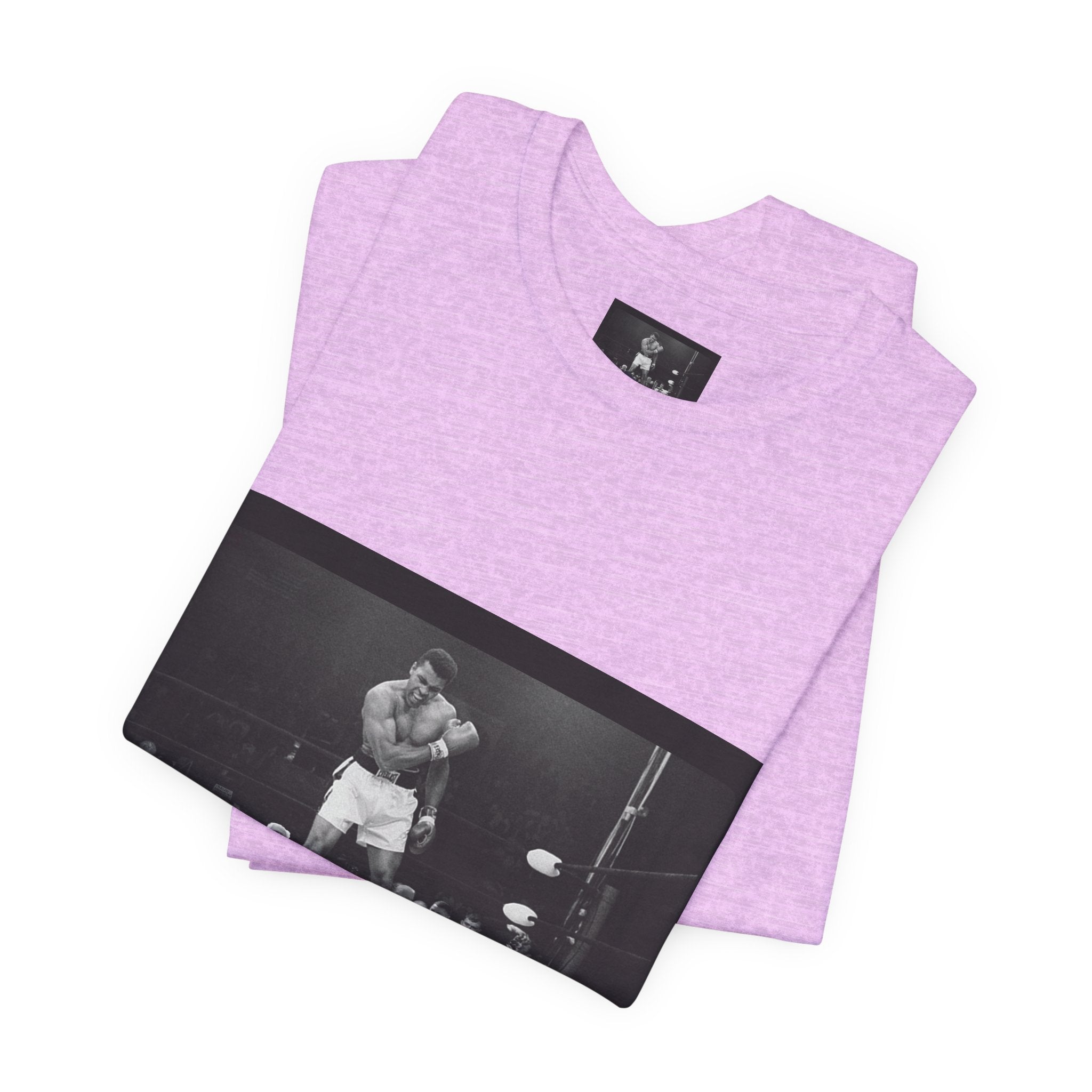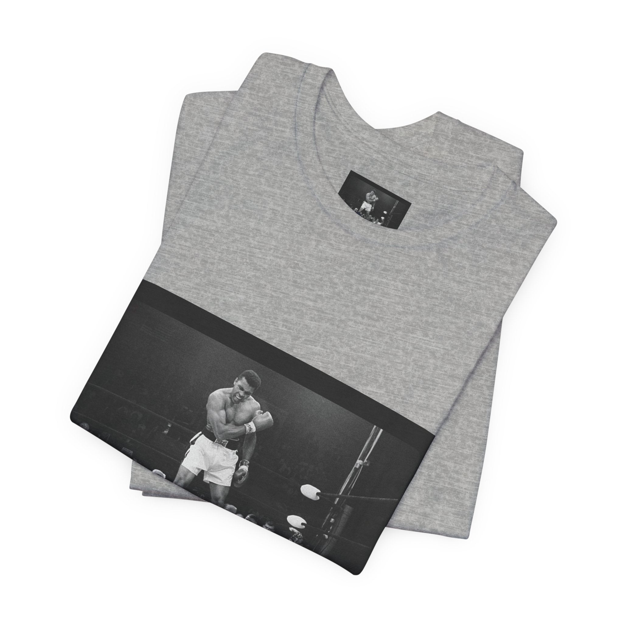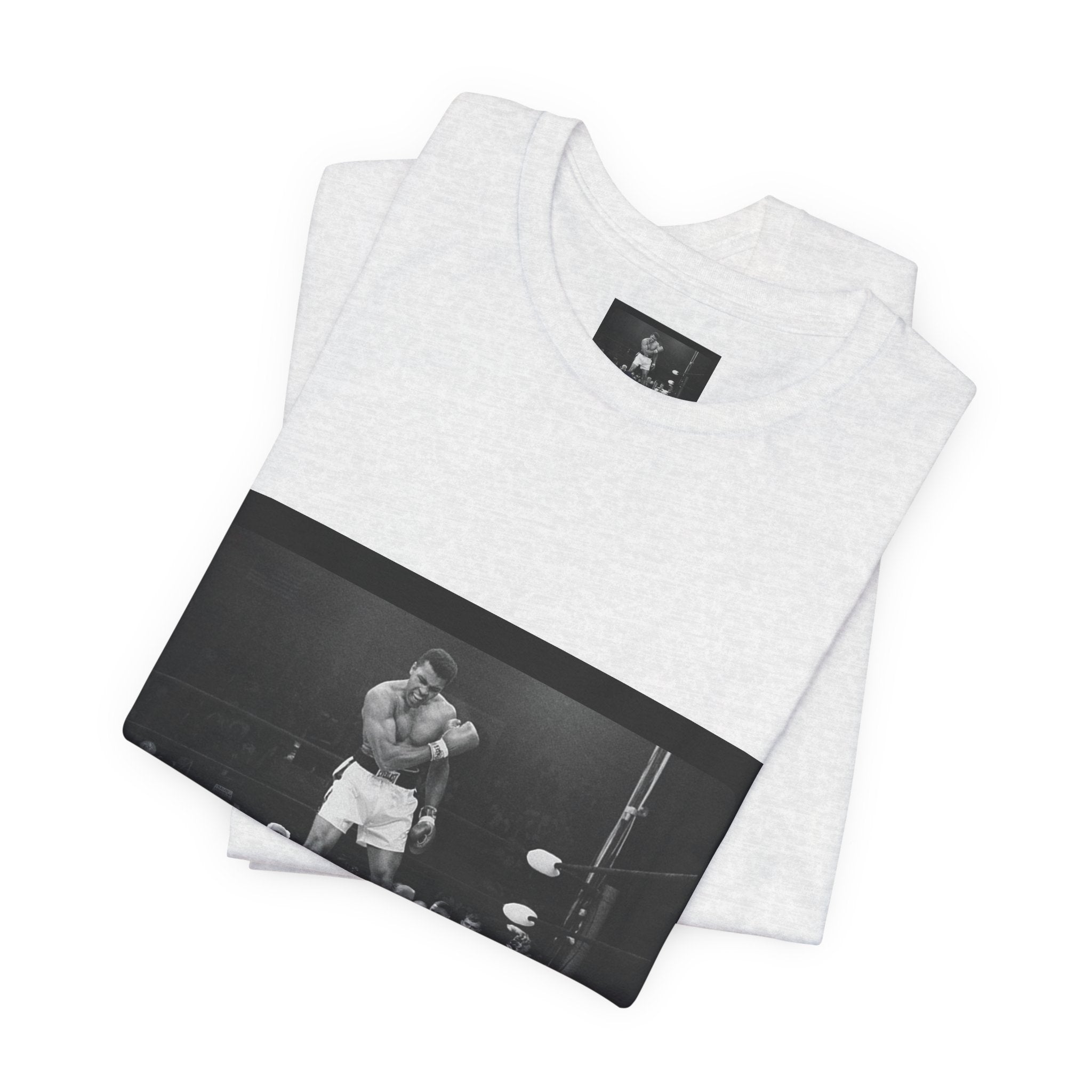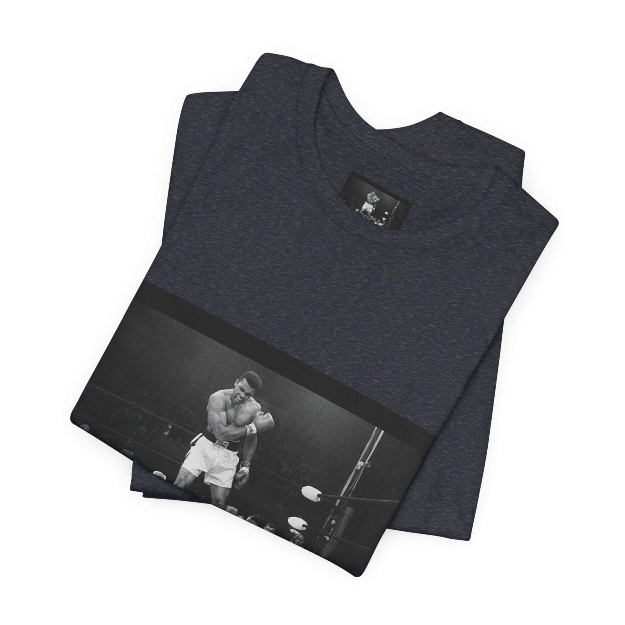 This lightweight jersey tee carries a raw, iconic moment across the chest — a black-and-white boxing scene frozen in time. Built from soft Airlume combed and ring-spun cotton, the shirt feels breathable and moves easily from morning training runs to late-night hangs. The retail cut and crew neckline keep the silhouette clean and wearable, while subtle details like side seams, shoulder tape, and a ribbed knit collar ensure the tee keeps its shape through frequent wear. The printed label and sleeve artwork use crisp DTF (with DTG on some providers) for sharp, lasting imagery. It’s made and sourced with ethical standards in mind, REACH certified and produced under fair labor practices.