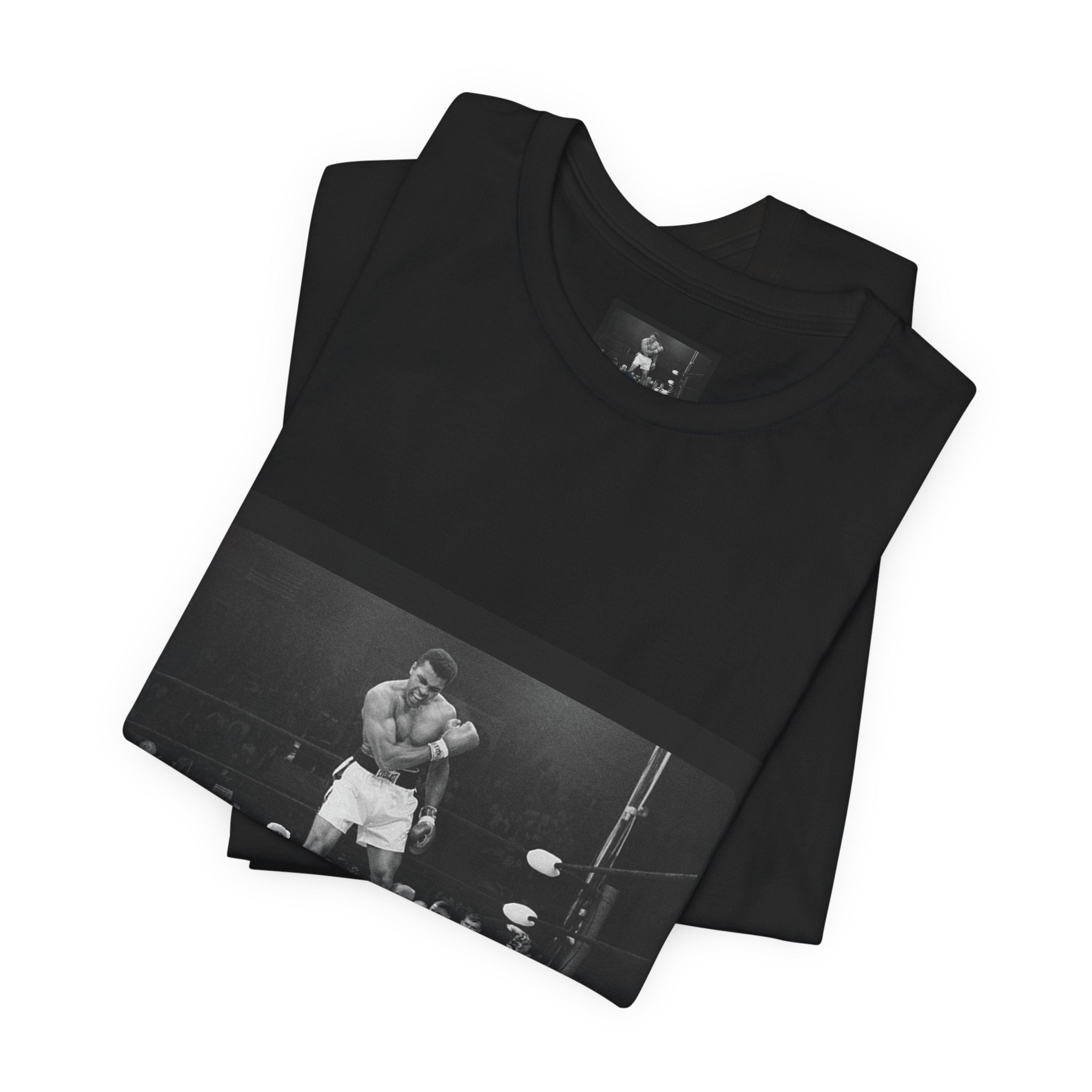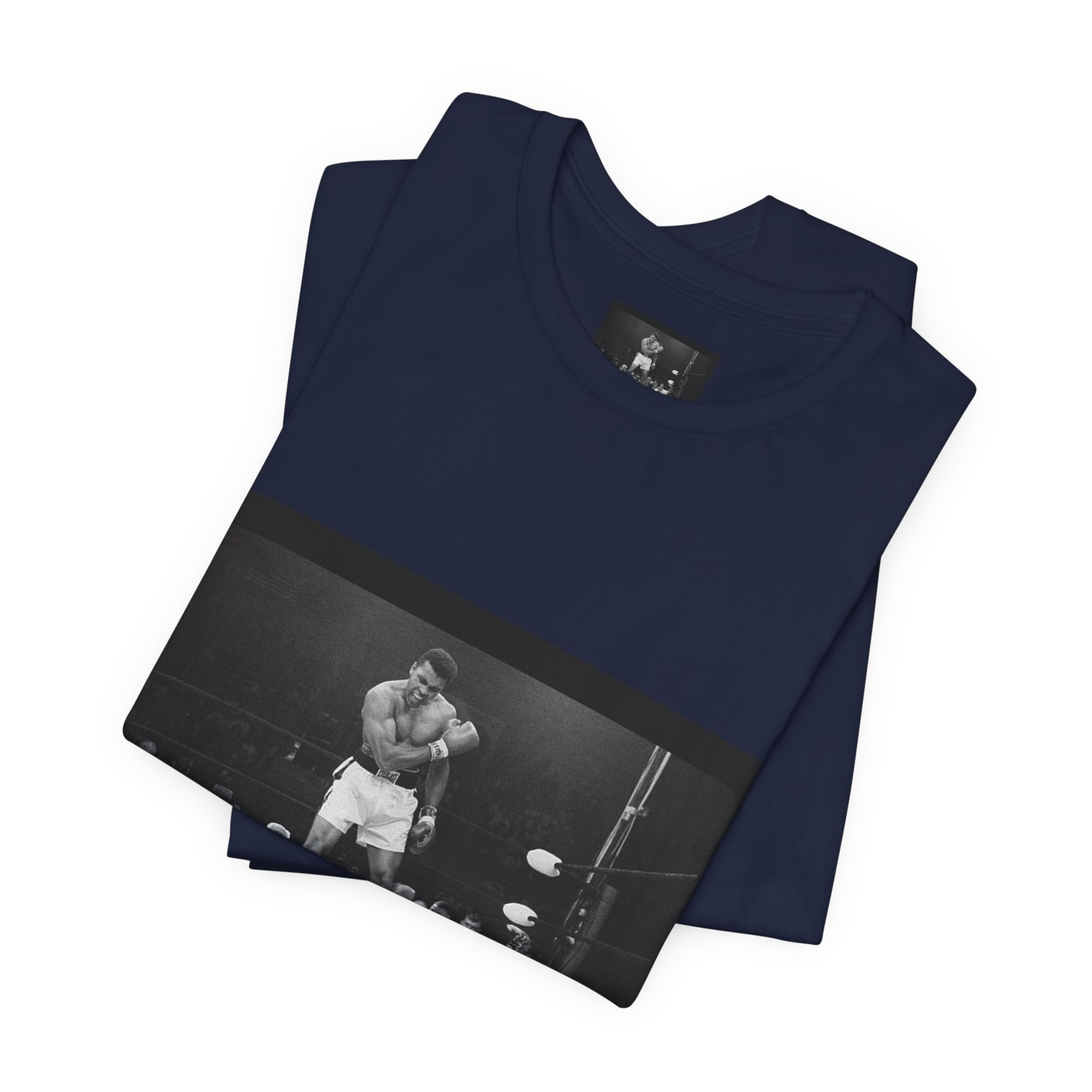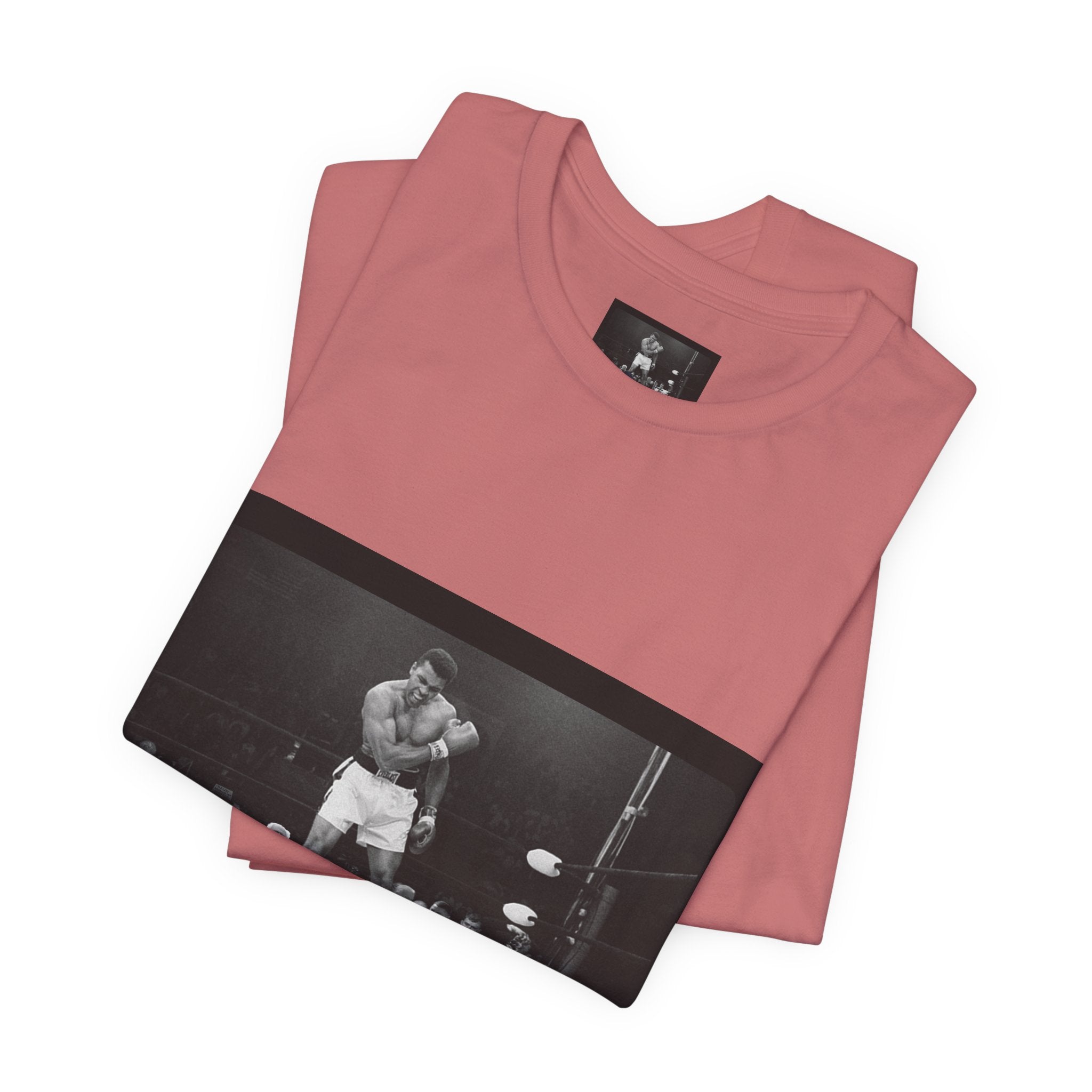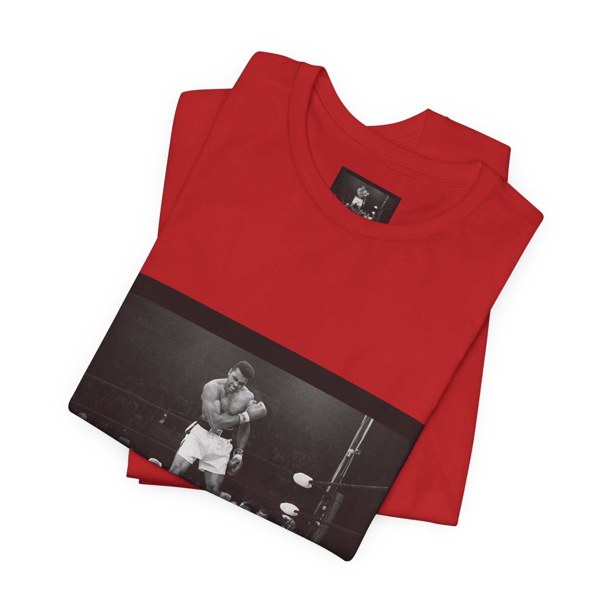 This lightweight jersey tee carries a raw, iconic moment across the chest — a black-and-white boxing scene frozen in time. Built from soft Airlume combed and ring-spun cotton, the shirt feels breathable and moves easily from morning training runs to late-night hangs. The retail cut and crew neckline keep the silhouette clean and wearable, while subtle details like side seams, shoulder tape, and a ribbed knit collar ensure the tee keeps its shape through frequent wear. The printed label and sleeve artwork use crisp DTF (with DTG on some providers) for sharp, lasting imagery. It’s made and sourced with ethical standards in mind, REACH certified and produced under fair labor practices.