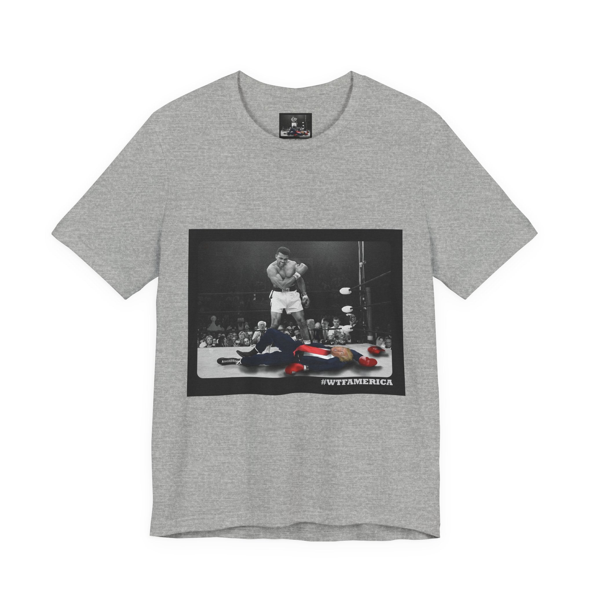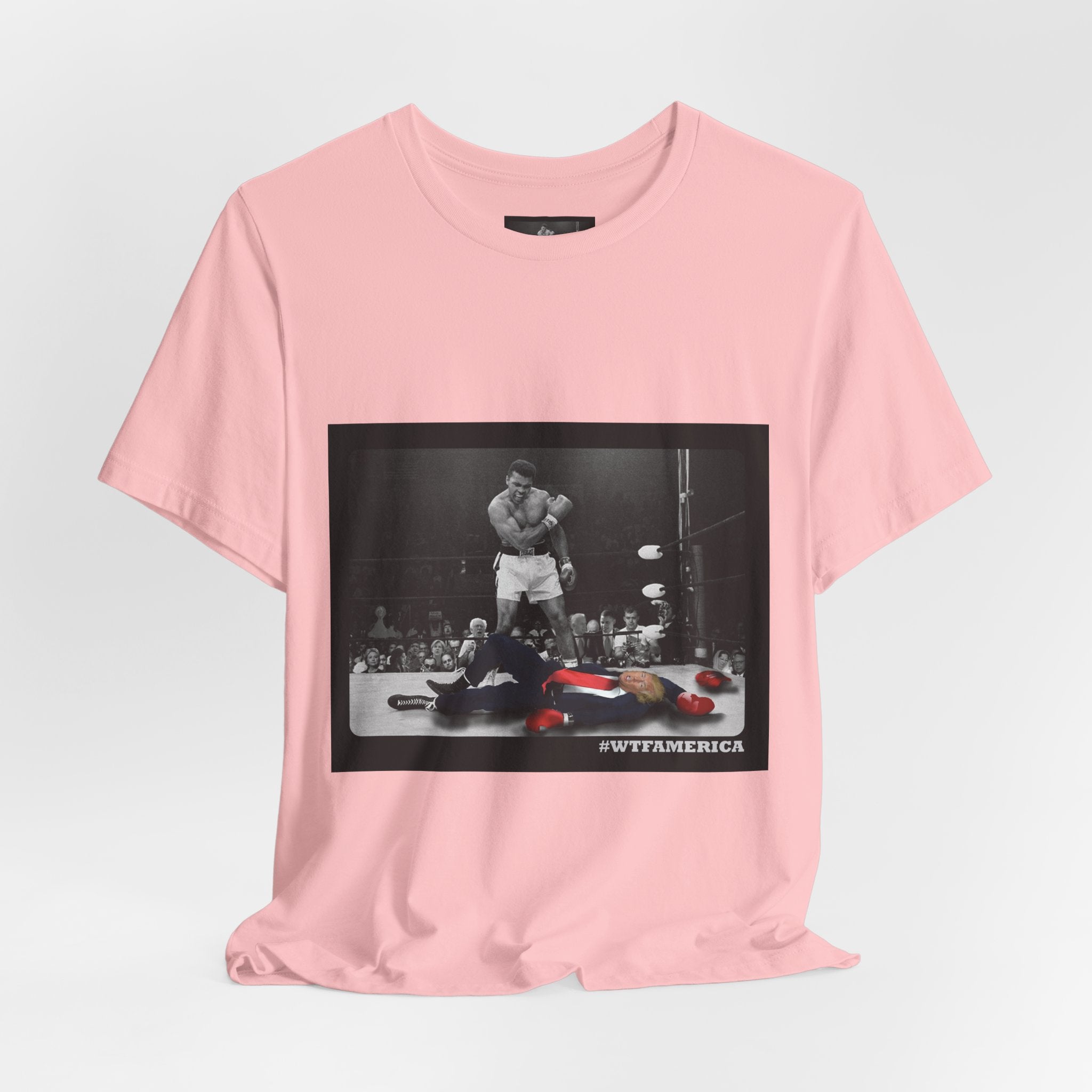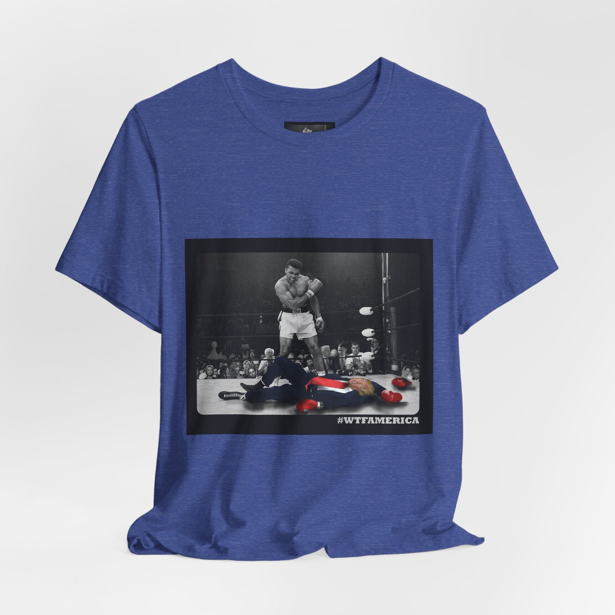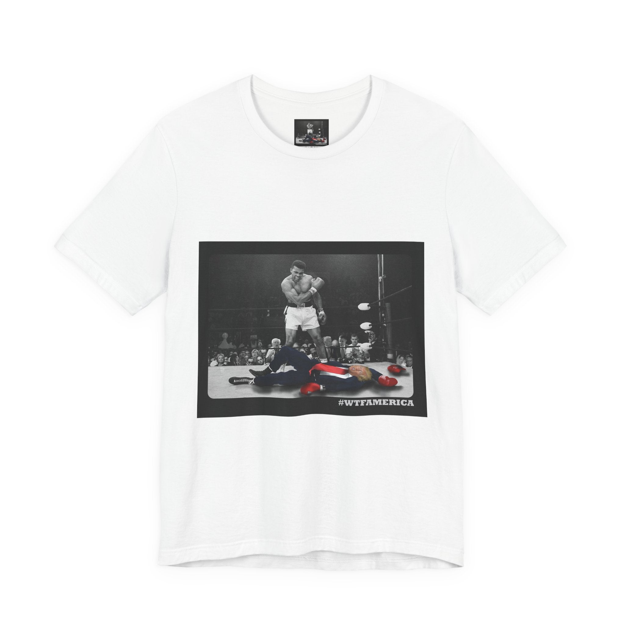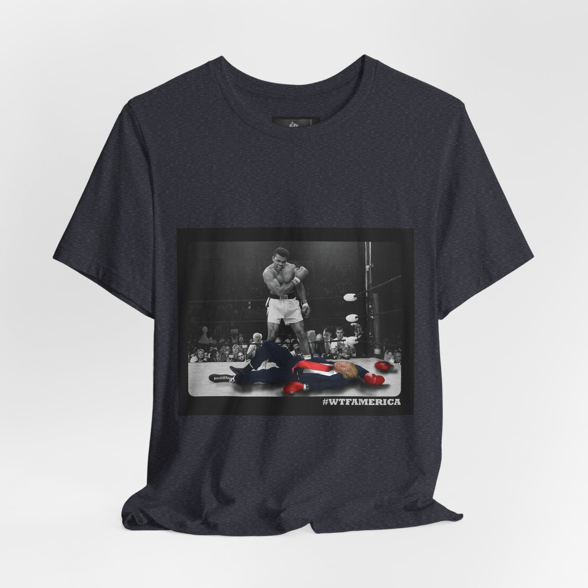 This lightweight jersey tee carries a raw, iconic moment across the chest — a black-and-white boxing scene frozen in time. Built from soft Airlume combed and ring-spun cotton, the shirt feels breathable and moves easily from morning training runs to late-night hangs. The retail cut and crew neckline keep the silhouette clean and wearable, while subtle details like side seams, shoulder tape, and a ribbed knit collar ensure the tee keeps its shape through frequent wear. The printed label and sleeve artwork use crisp DTF (with DTG on some providers) for sharp, lasting imagery. It’s made and sourced with ethical standards in mind, REACH certified and produced under fair labor practices.