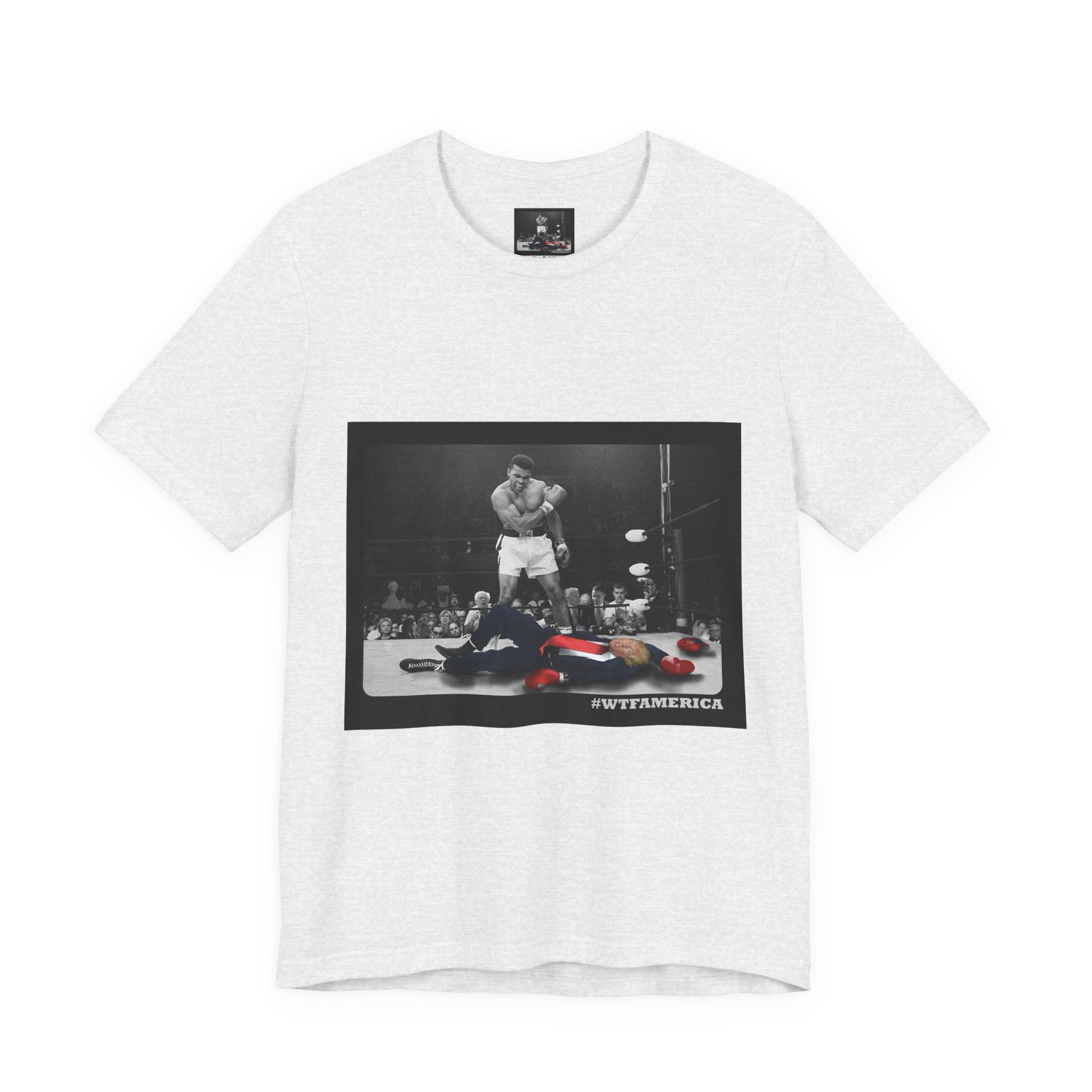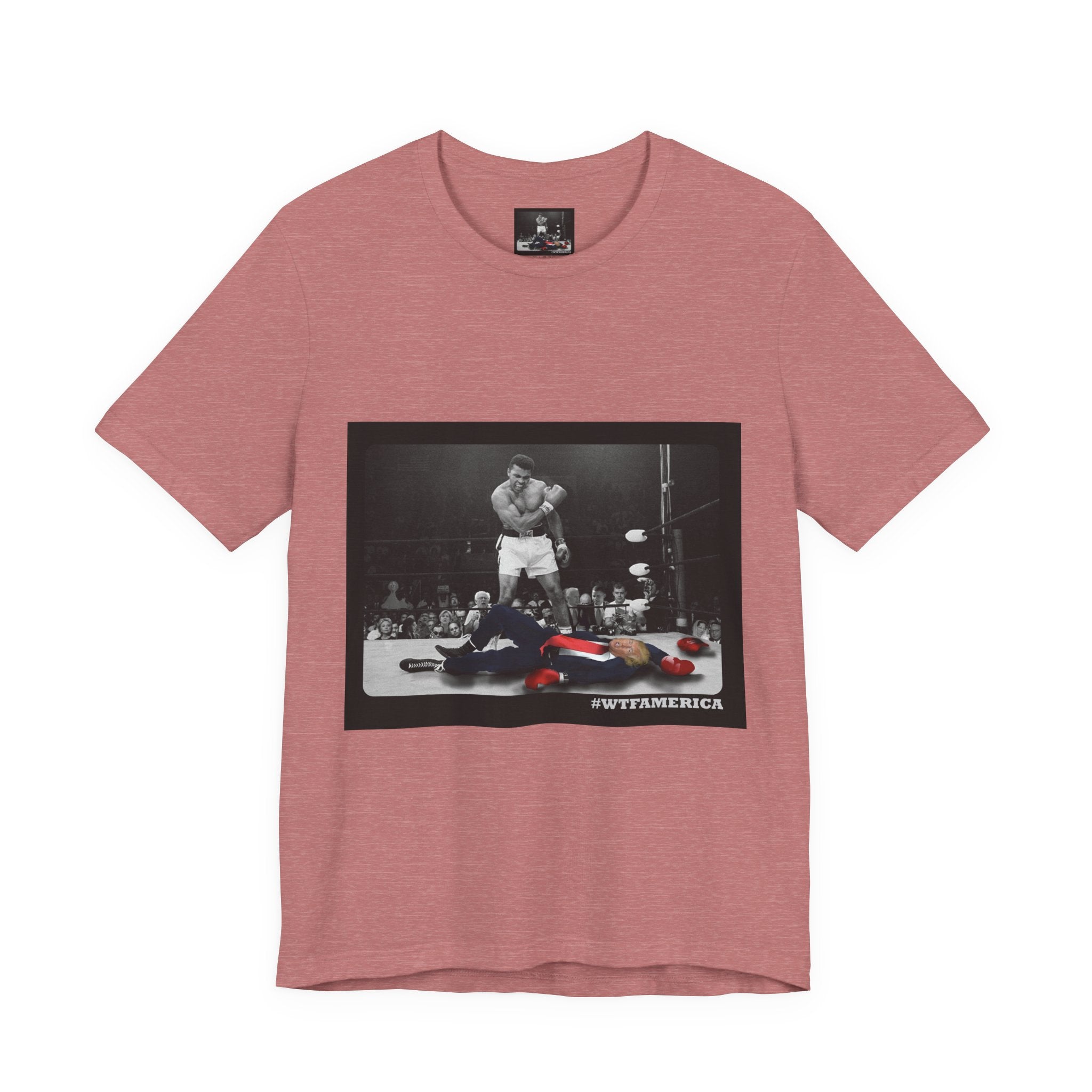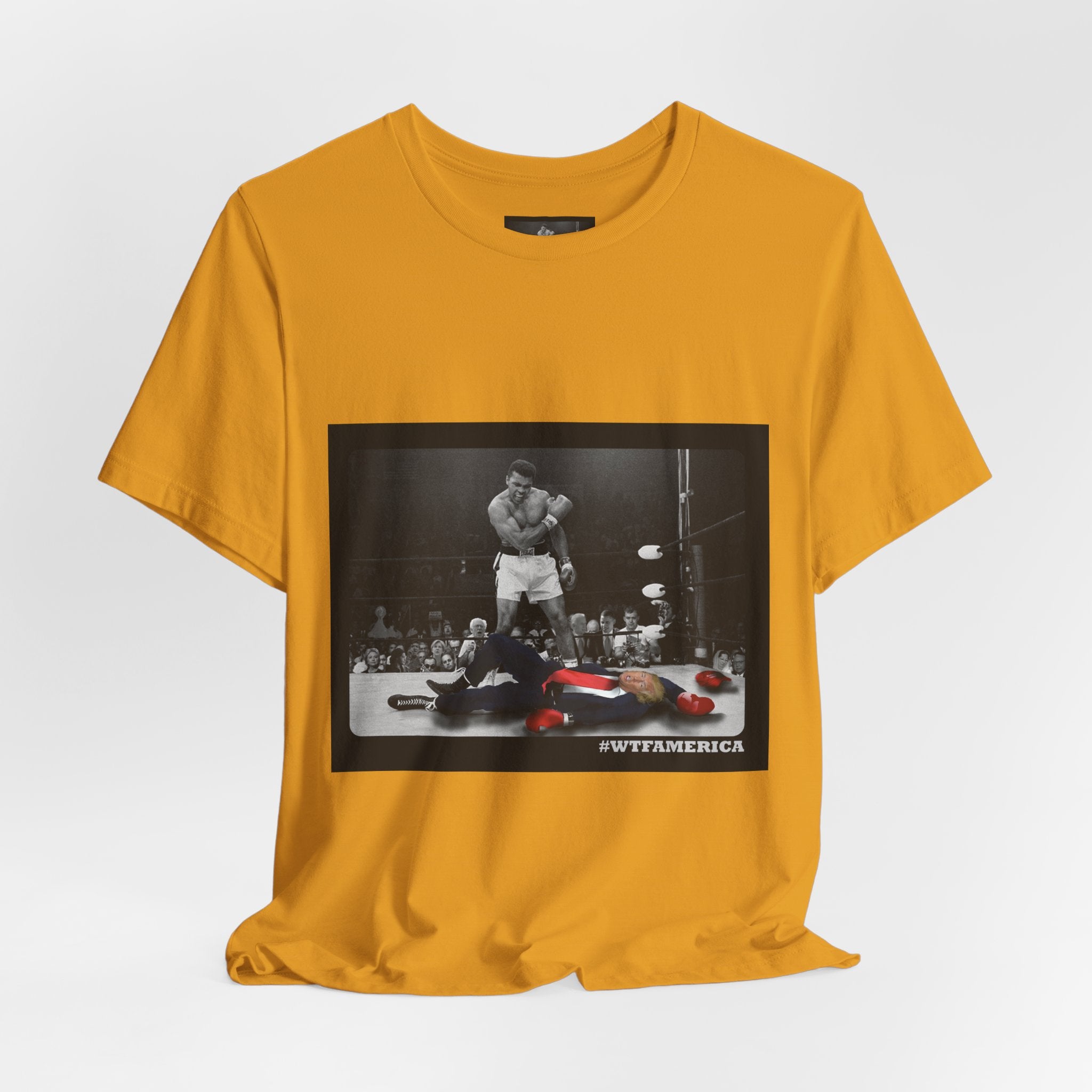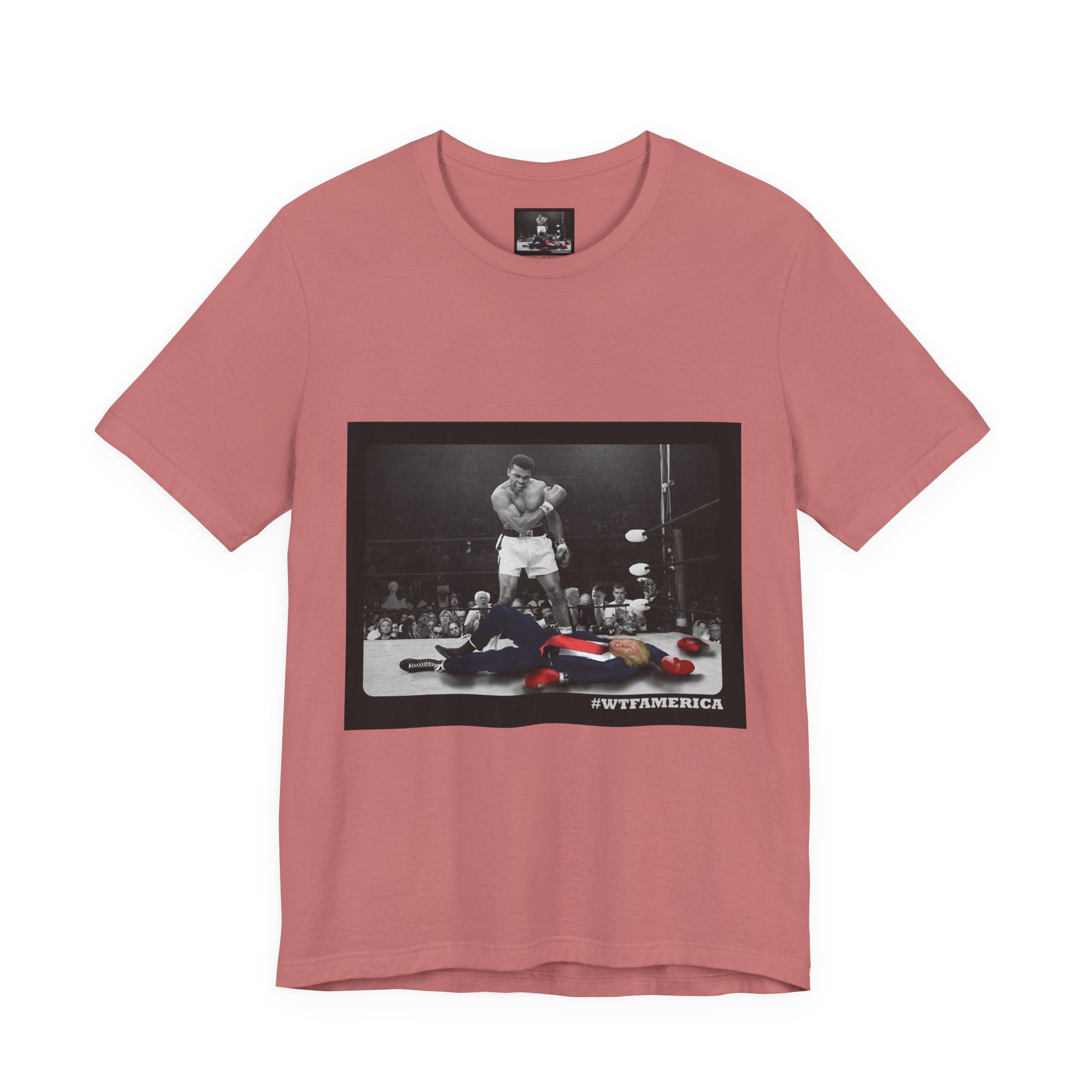 This lightweight jersey tee carries a raw, iconic moment across the chest — a black-and-white boxing scene frozen in time. Built from soft Airlume combed and ring-spun cotton, the shirt feels breathable and moves easily from morning training runs to late-night hangs. The retail cut and crew neckline keep the silhouette clean and wearable, while subtle details like side seams, shoulder tape, and a ribbed knit collar ensure the tee keeps its shape through frequent wear. The printed label and sleeve artwork use crisp DTF (with DTG on some providers) for sharp, lasting imagery. It’s made and sourced with ethical standards in mind, REACH certified and produced under fair labor practices.