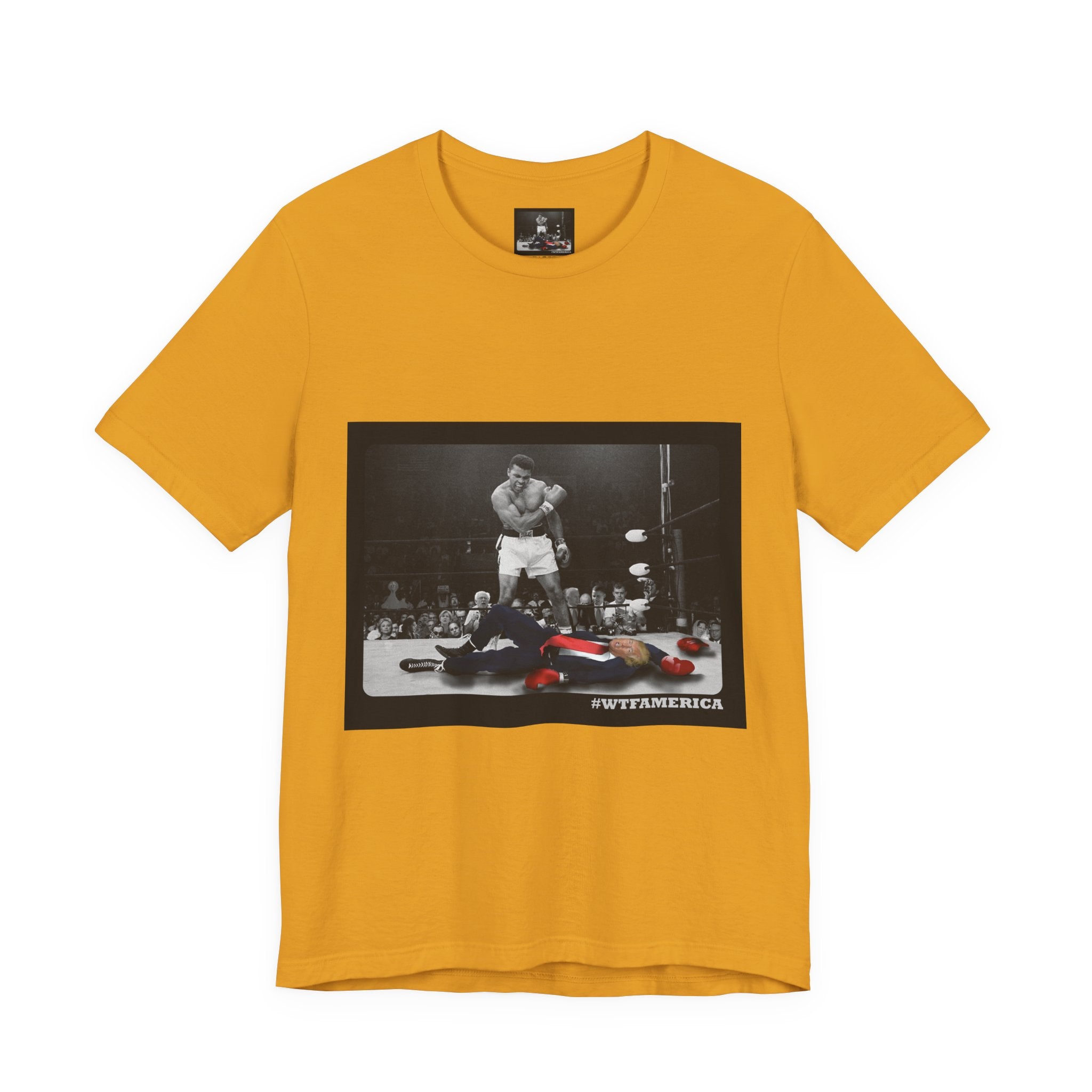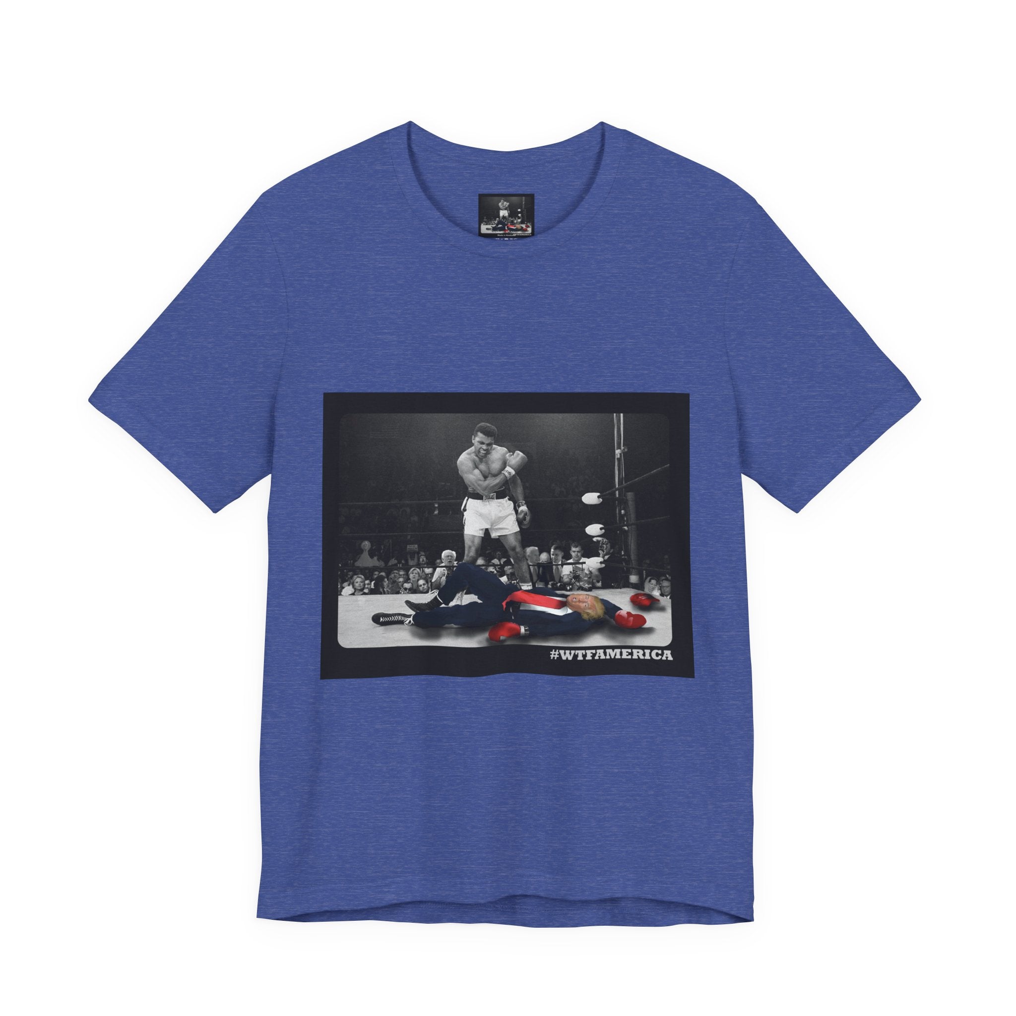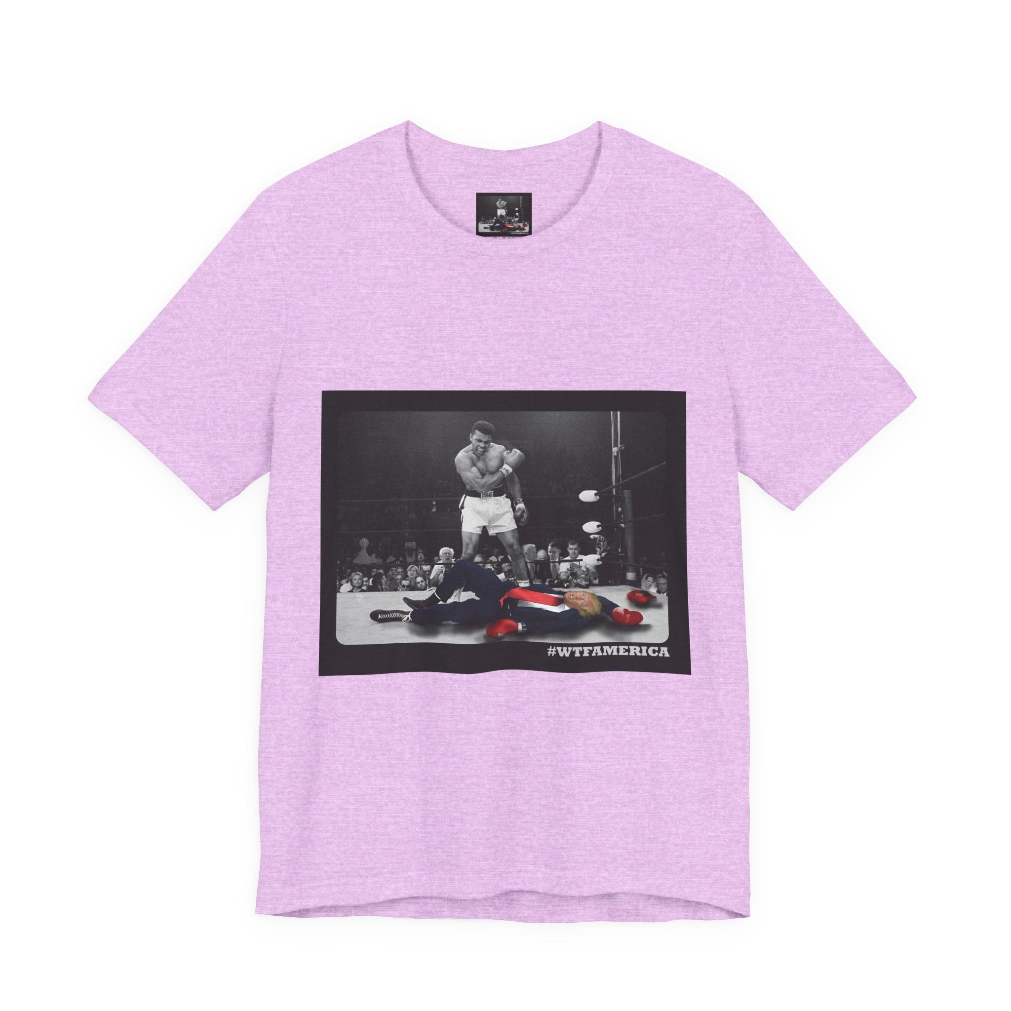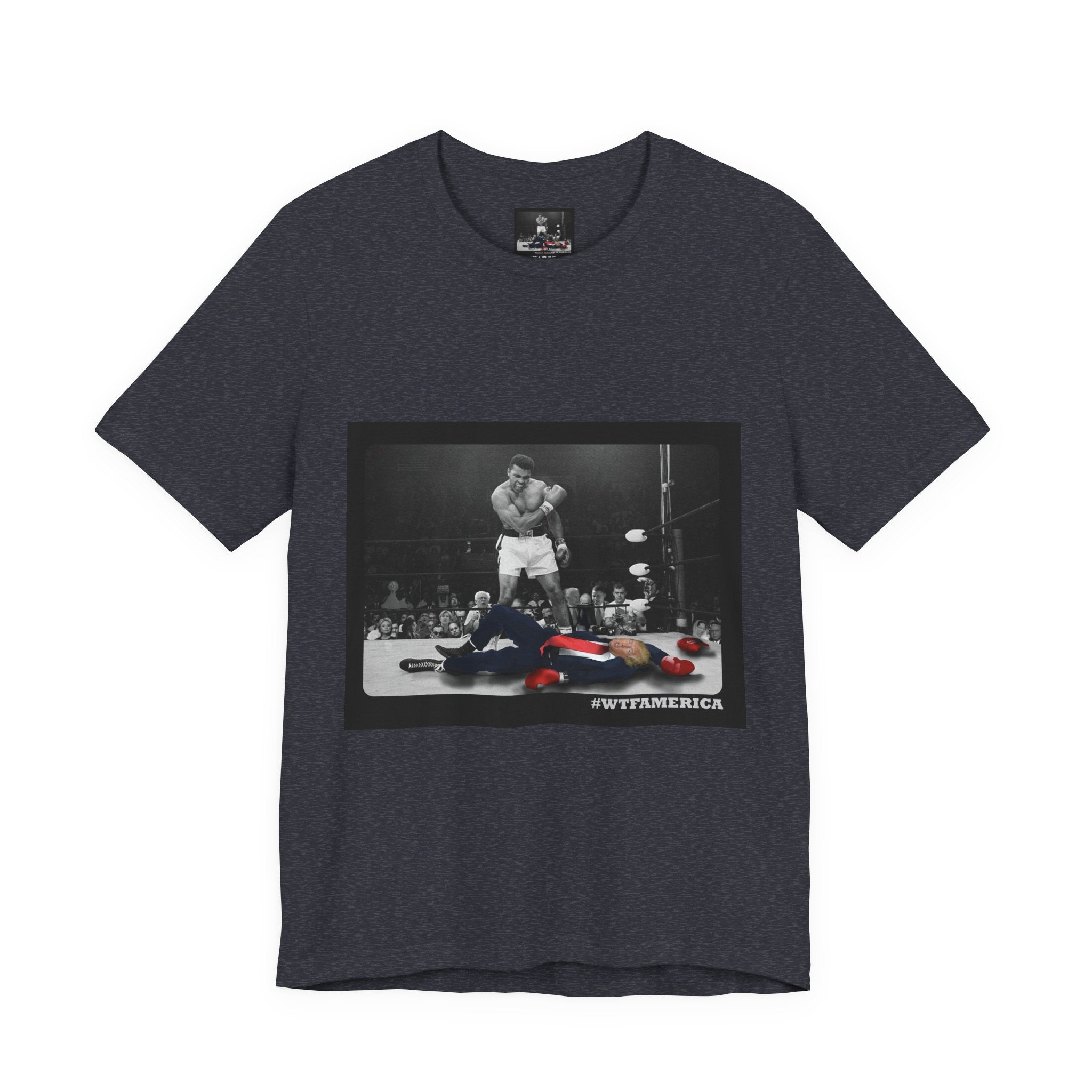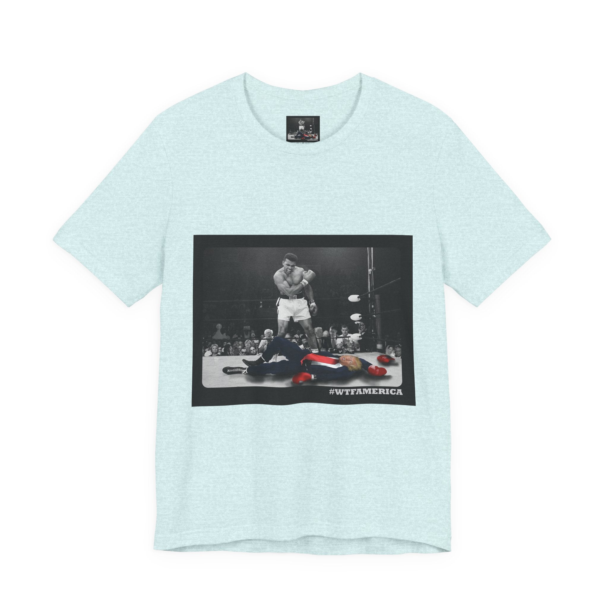 This lightweight jersey tee carries a raw, iconic moment across the chest — a black-and-white boxing scene frozen in time. Built from soft Airlume combed and ring-spun cotton, the shirt feels breathable and moves easily from morning training runs to late-night hangs. The retail cut and crew neckline keep the silhouette clean and wearable, while subtle details like side seams, shoulder tape, and a ribbed knit collar ensure the tee keeps its shape through frequent wear. The printed label and sleeve artwork use crisp DTF (with DTG on some providers) for sharp, lasting imagery. It’s made and sourced with ethical standards in mind, REACH certified and produced under fair labor practices.