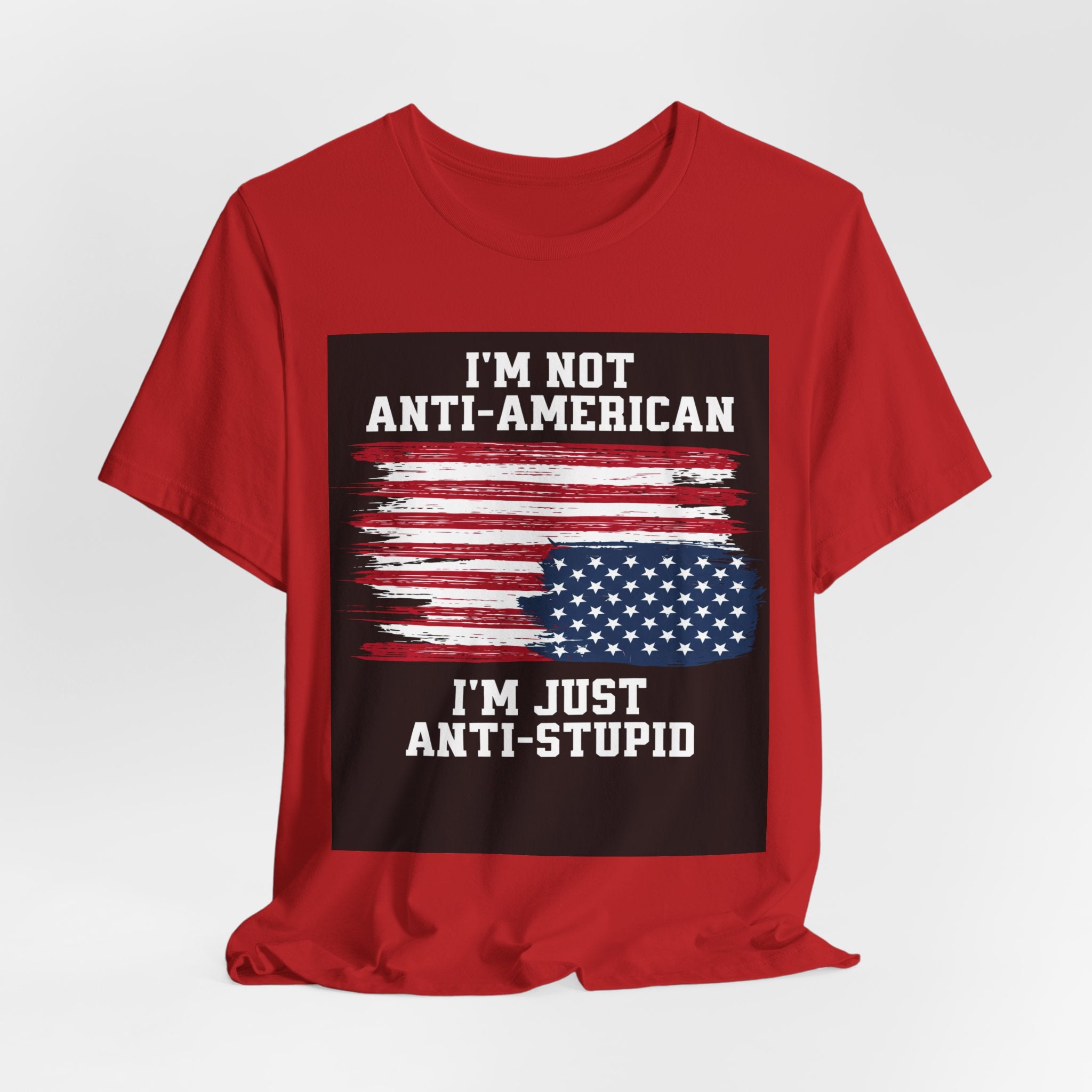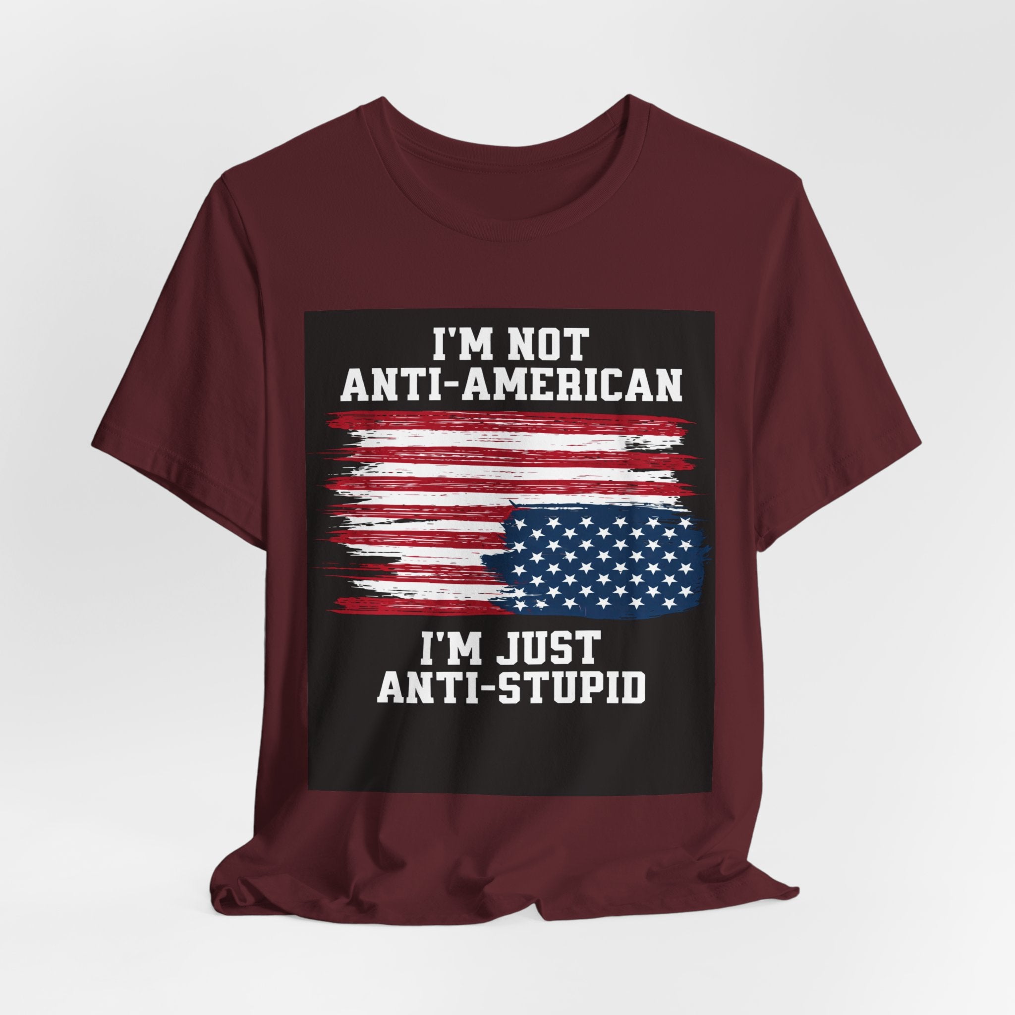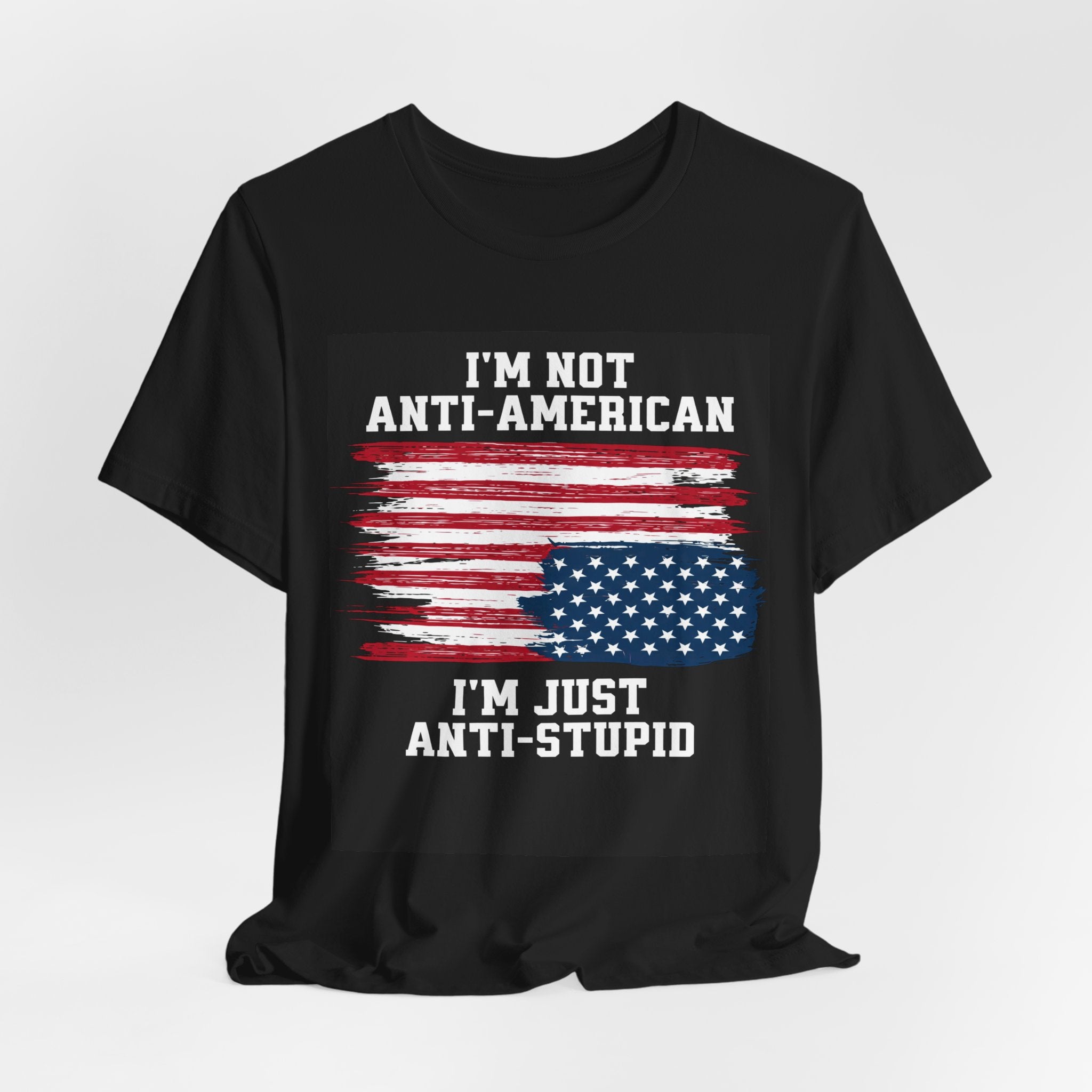 Patriotic Statement Tee — "I'm Not Anti‑American, I'm Just Anti‑Stupid"