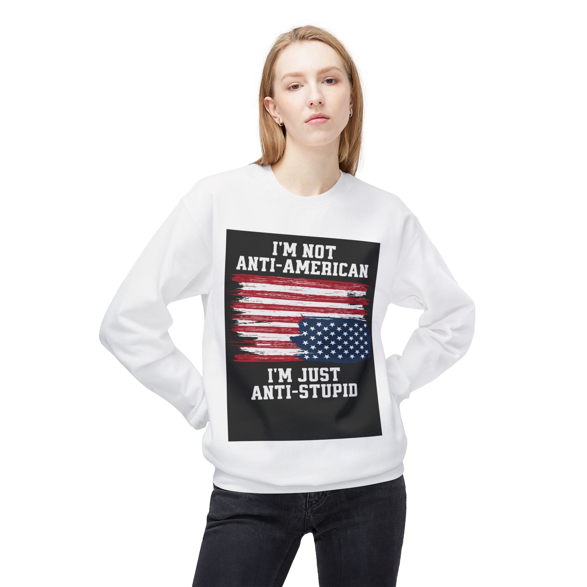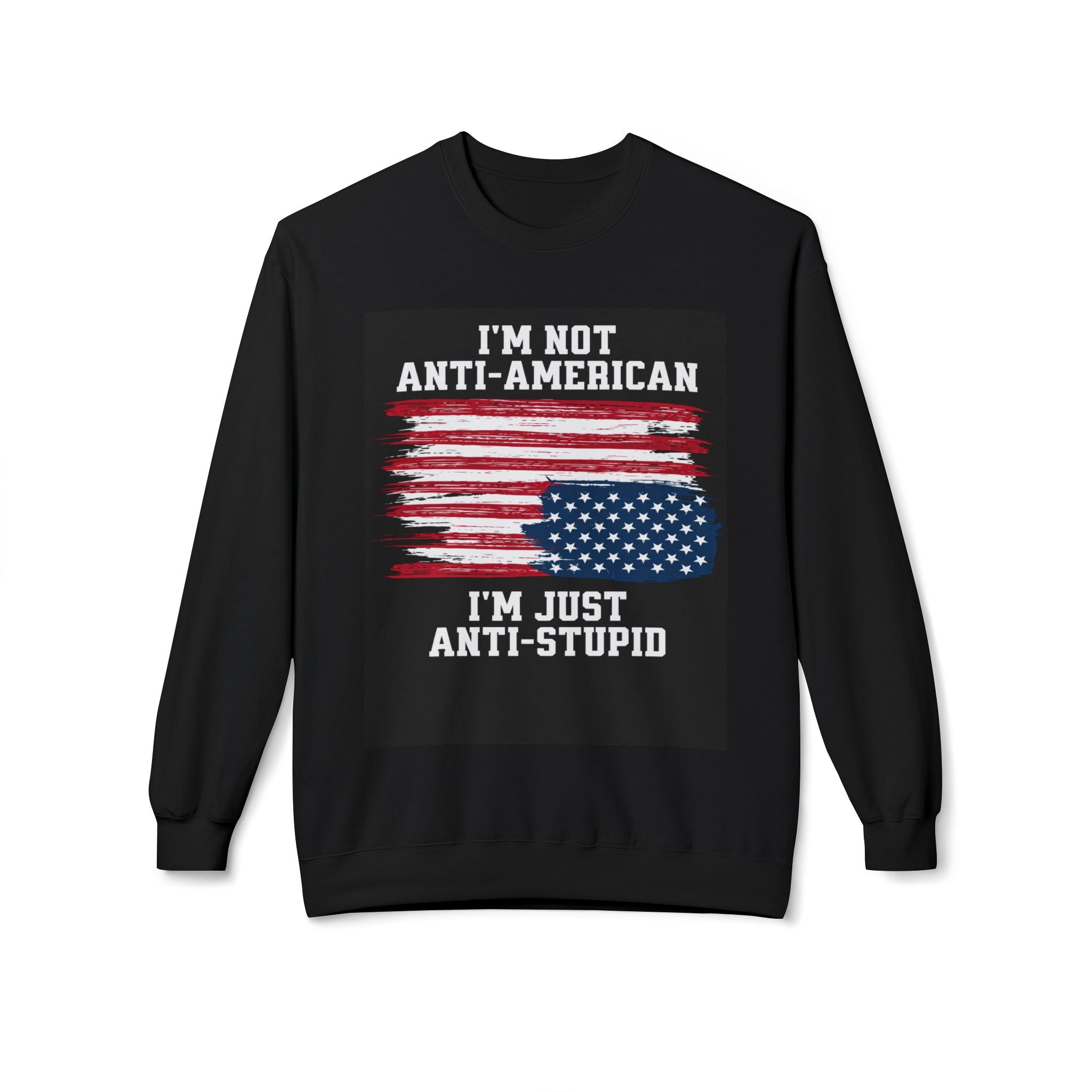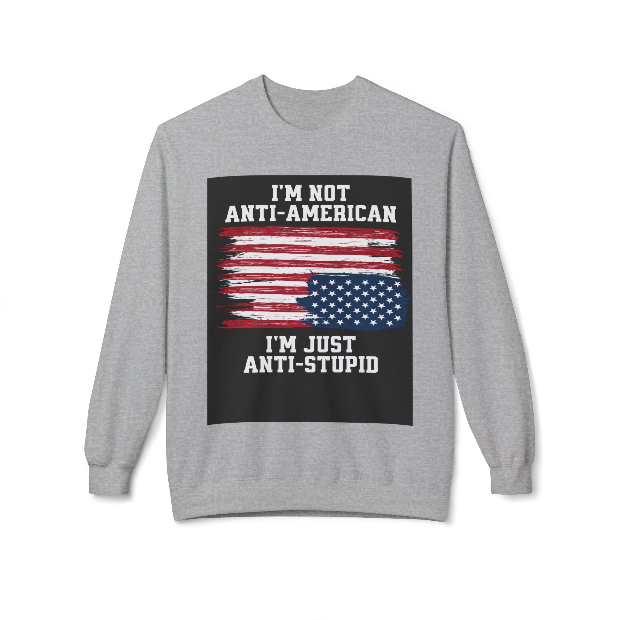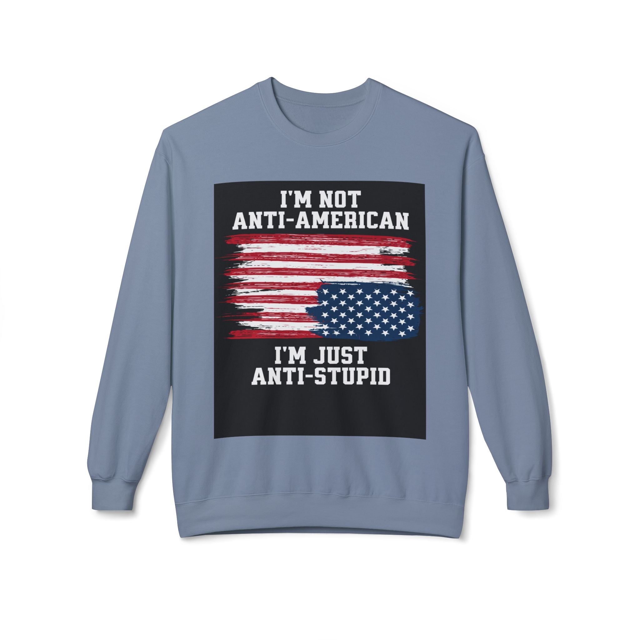 Crewneck Sweatshirt — "I'm Not Anti‑American, I'm Just Anti‑Stupid" USA Flag Graphic