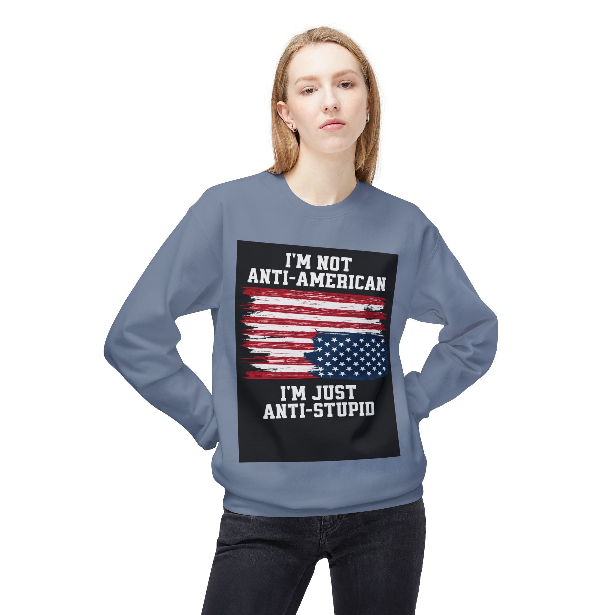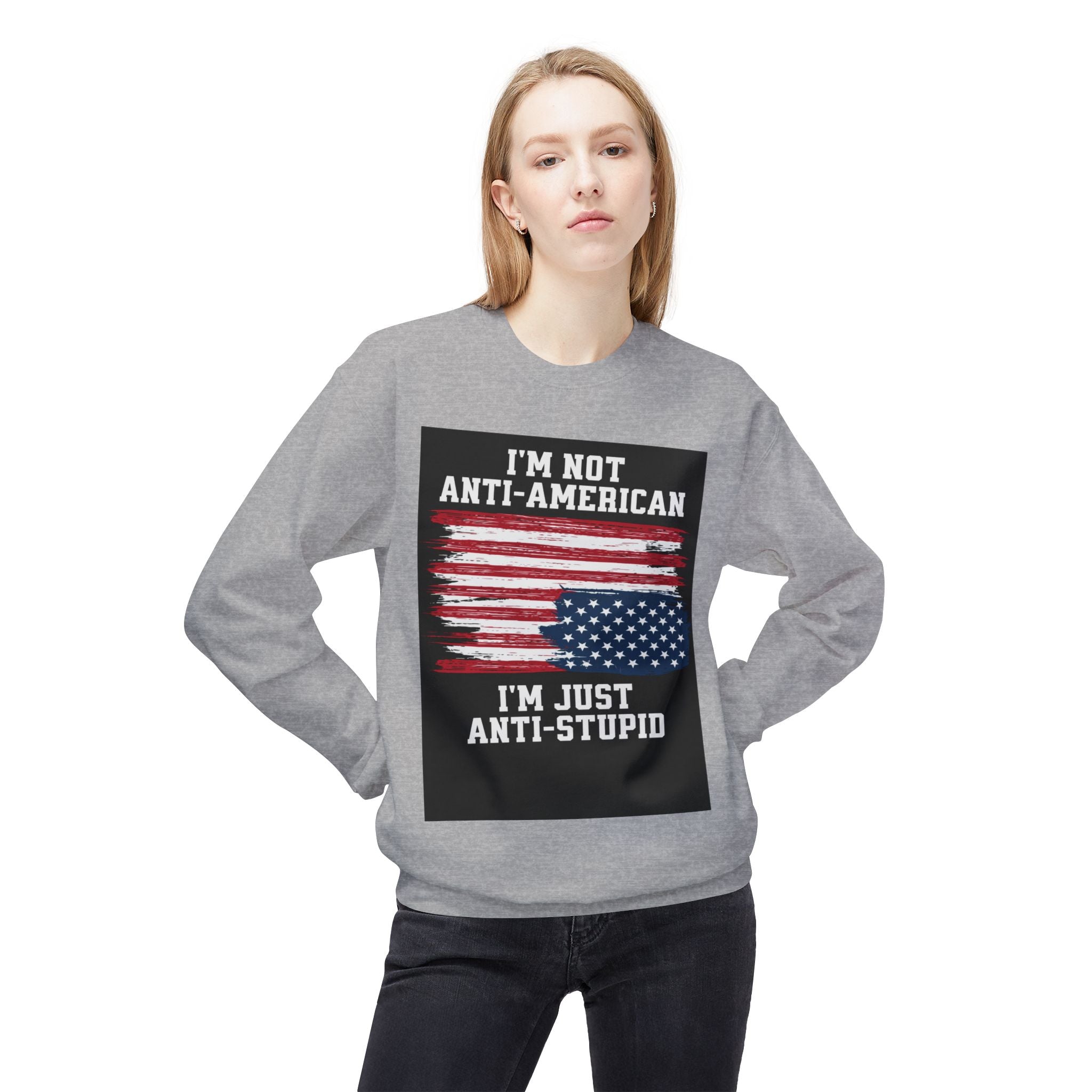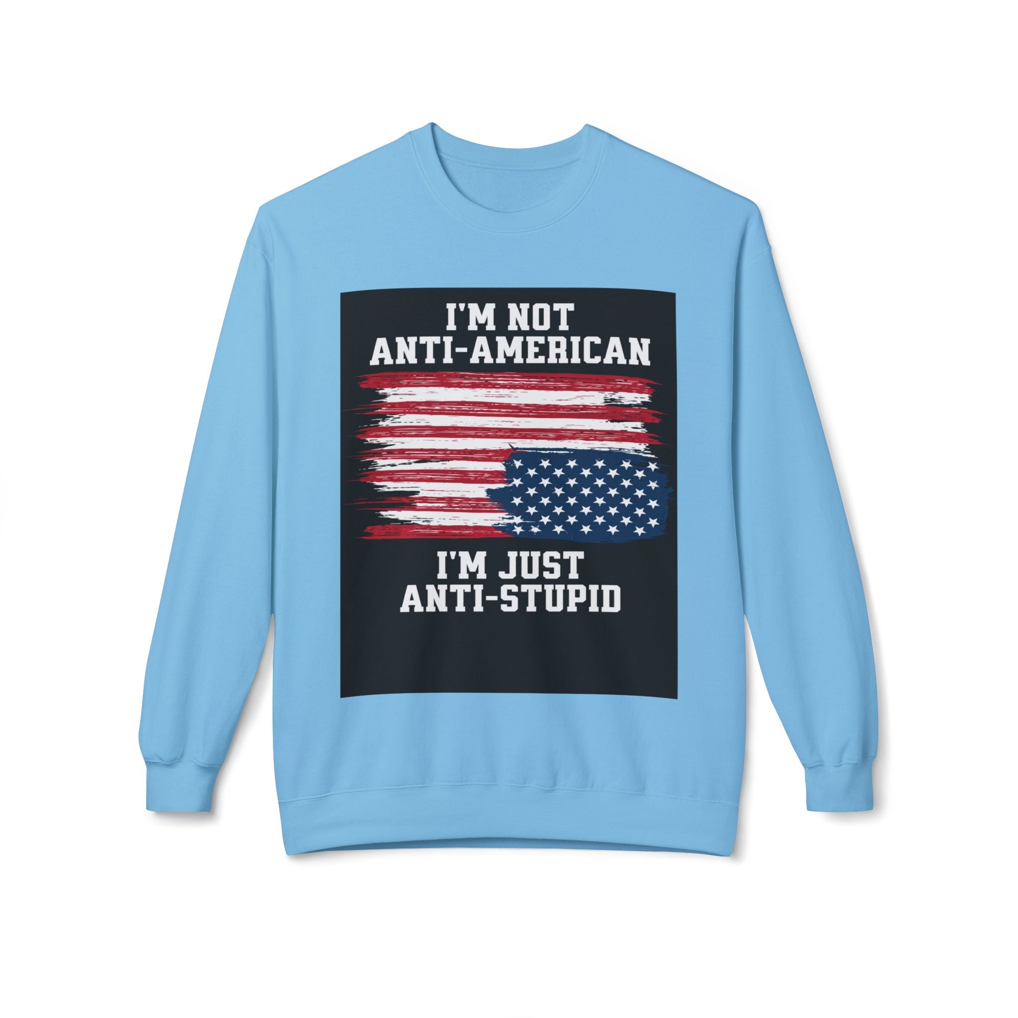 Crewneck Sweatshirt — "I'm Not Anti‑American, I'm Just Anti‑Stupid" USA Flag Graphic