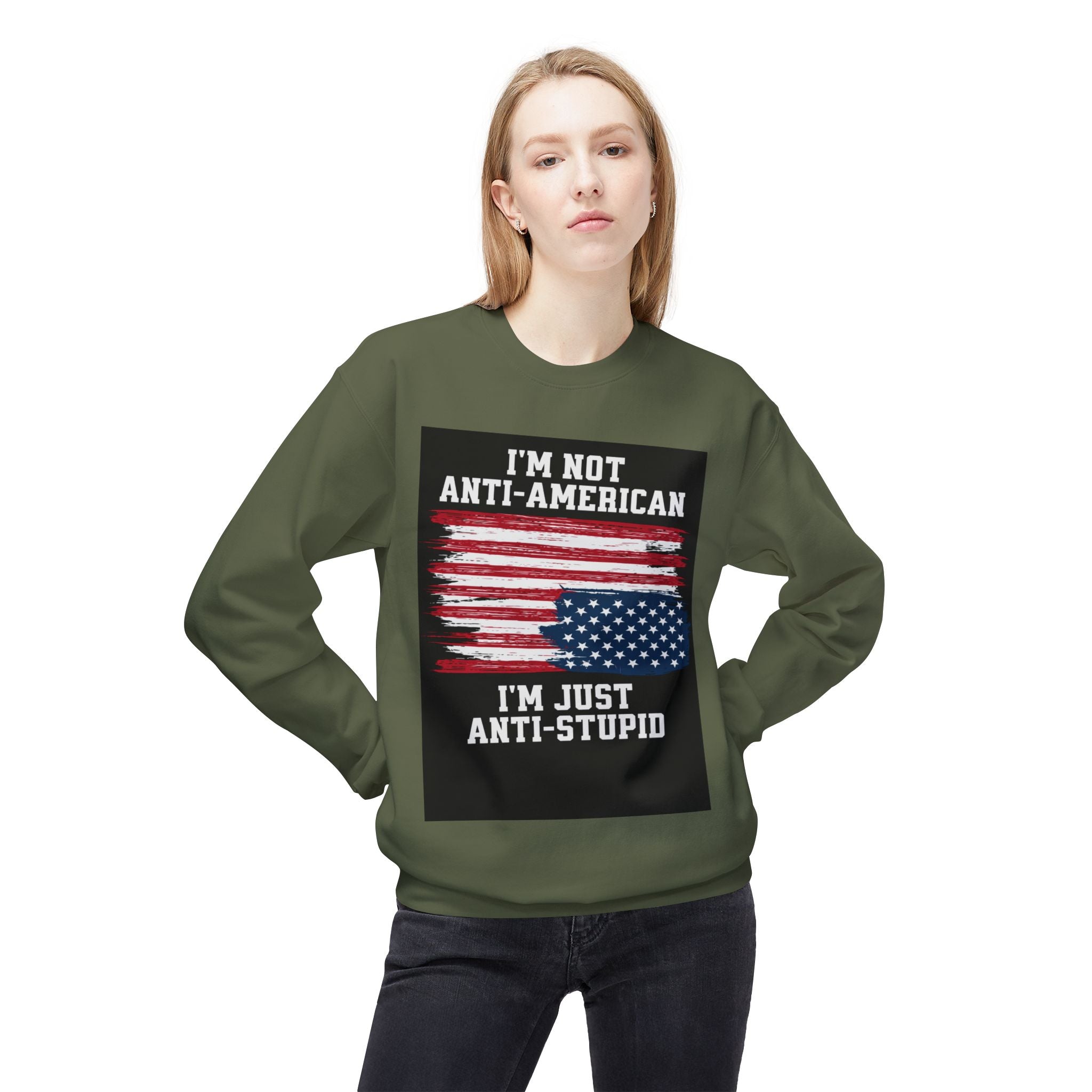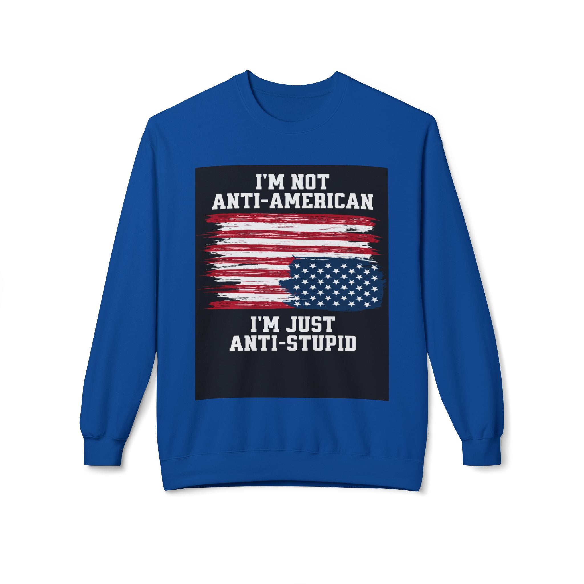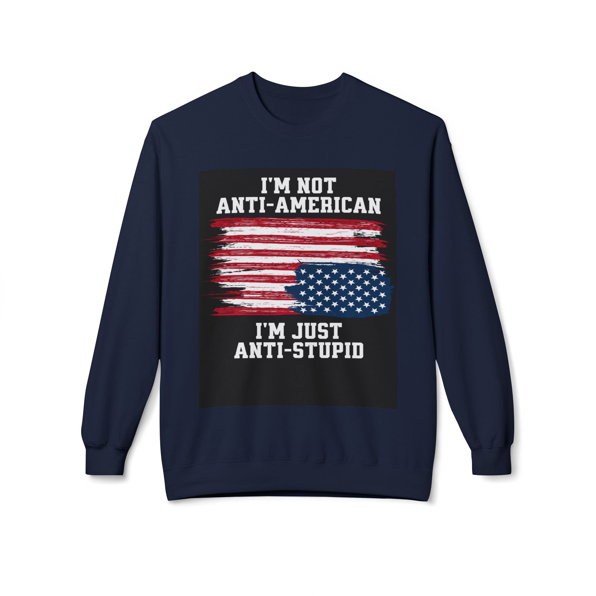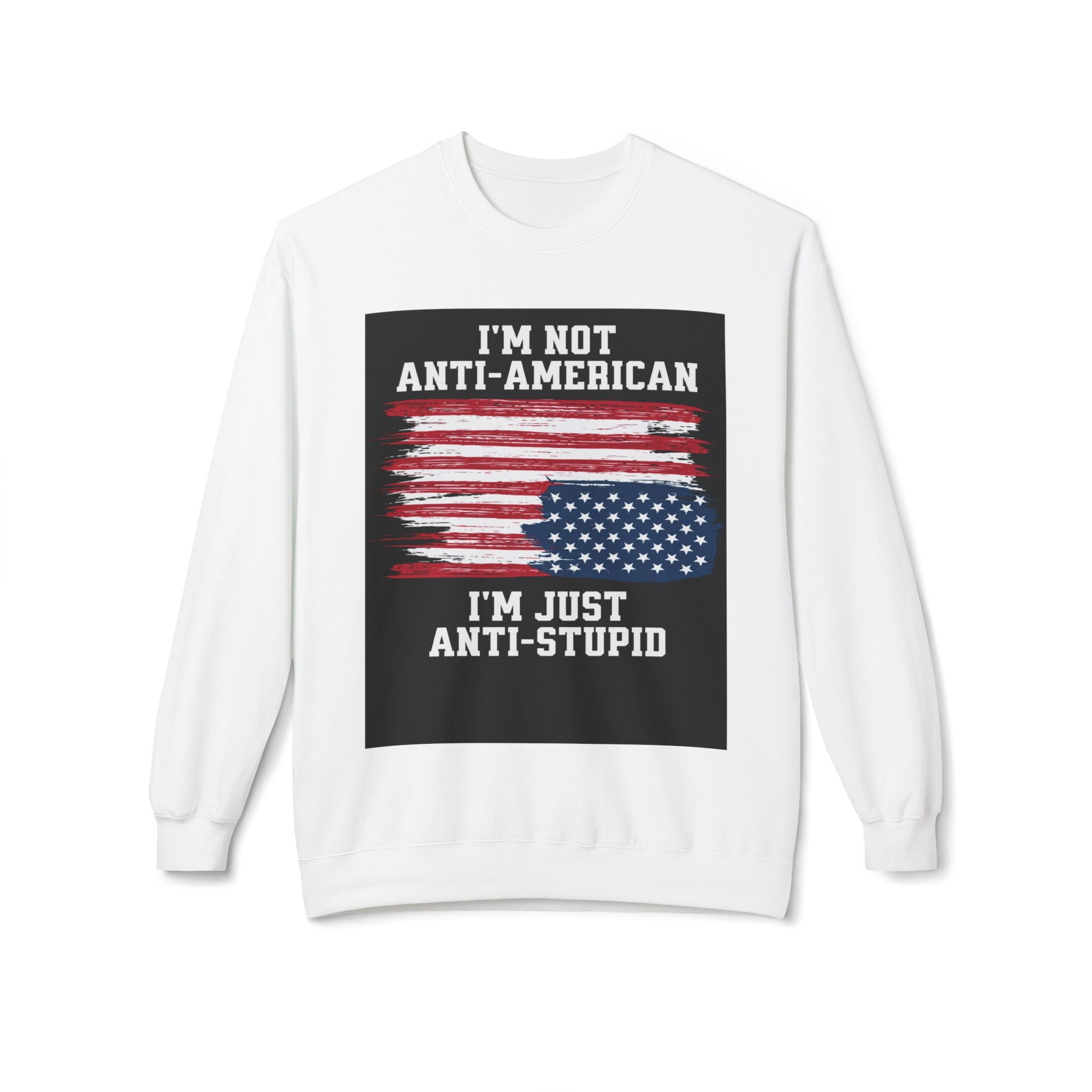 Crewneck Sweatshirt — "I'm Not Anti‑American, I'm Just Anti‑Stupid" USA Flag Graphic